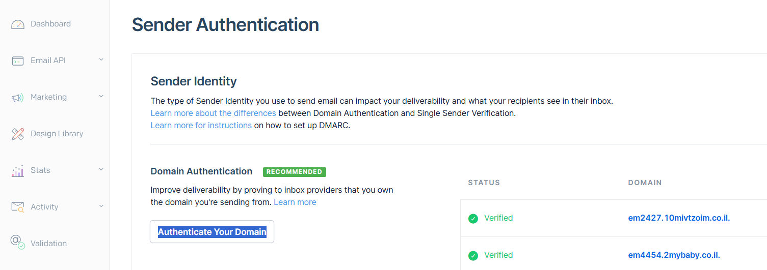 1. יש להכנס לאתר https://app.sendgrid.com/settings/sender_auth/verify?domain=2583075&provider=DNSimple