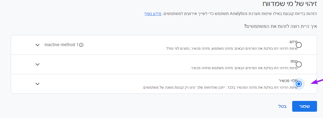 הגדרה נוספת שנגדיר בשדה בהגדרות האדמין - זיהוי של מי שמדווח