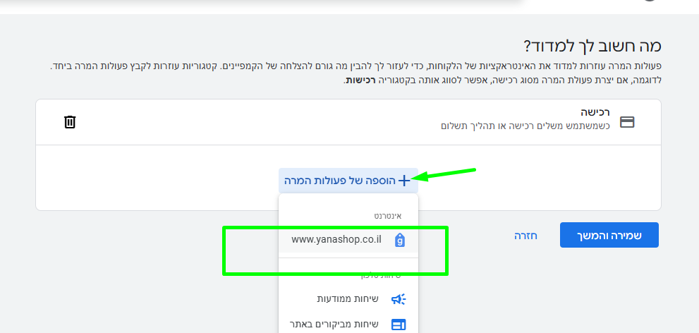 הוספת יעד