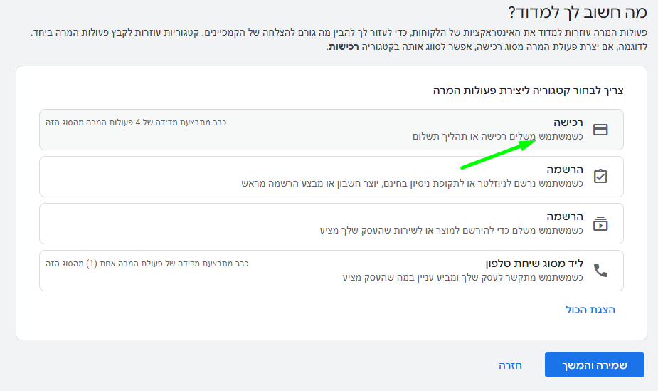 כדי לראות ולמדוד המרות רכישה אנליטיקס באדס