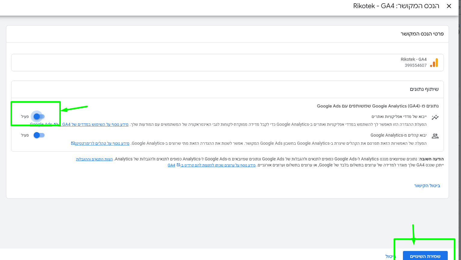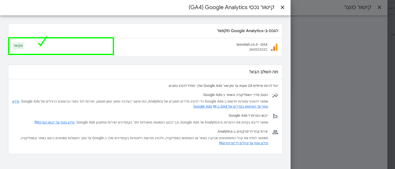 1. קישור חשבון Google Ads לחשבון Google Analytics (GA4)