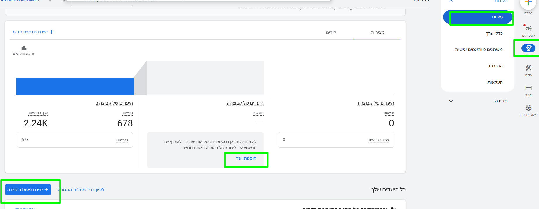 חשוב לוודא ששני המוצרים מקושרים (לא משנה אם זה לקוח עם קמפיינים פעילים קודמים או לקוח "חדש" כלומר ללא קמפיינם קודמים)