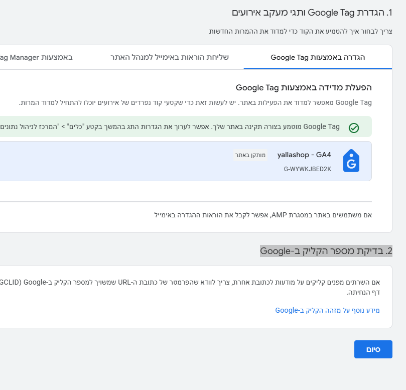 בחירת חשבון אנליטיקס רלוונטי של הלקוח