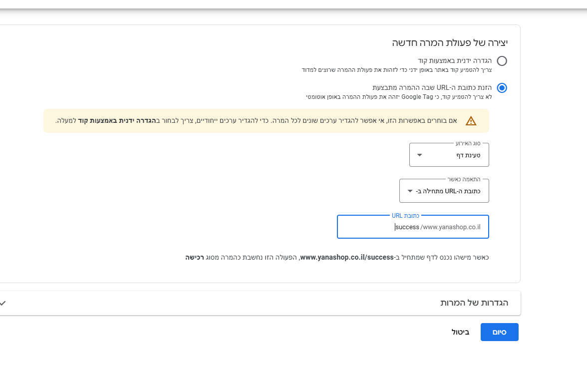 להוסיף /success להתחלת הקישור